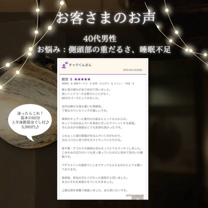 お客様からのお声~側頭部の重だるさ、睡眠不足~