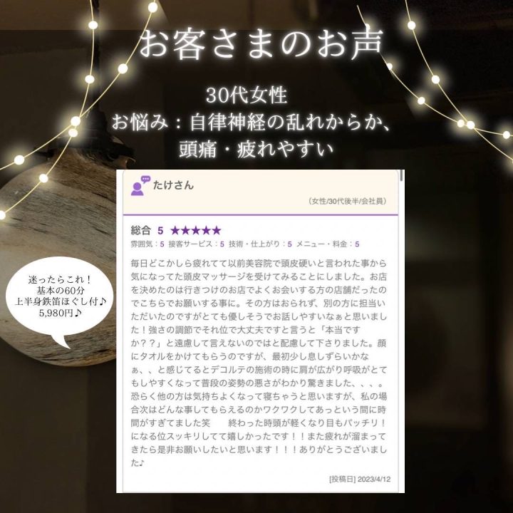 お客様からのお声〜自律神経の乱れからか、頭痛・疲れやすい〜
