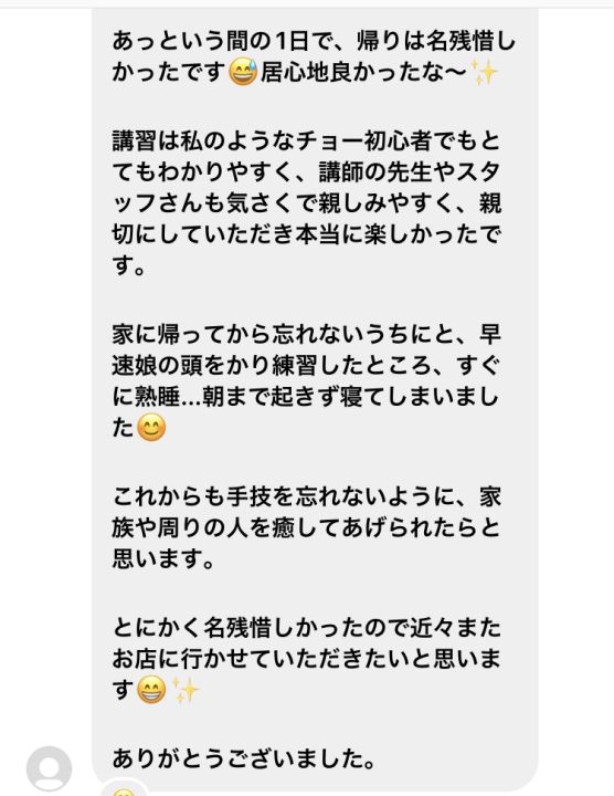 娘さんに施術されたんですねー!喜んでもらえるのって本当に嬉しいですよね!